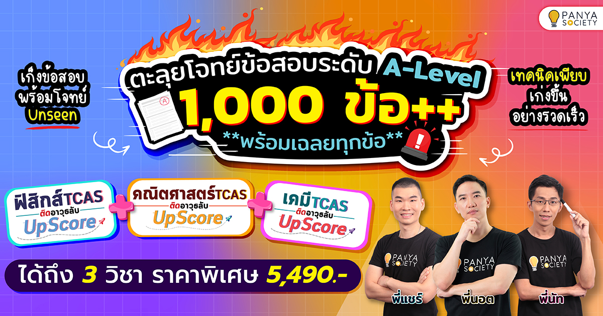 แพ็ก 3 วิชาสุดคุ้ม ฟิสิกส์ + เคมี + คณิตศาสตร์ TCAS ติดอาวุธลับ UpScore ตะลุยโจทย์ A-Level ใช้เวลาน้อย เพิ่มคะแนนมาก โดยอาจารย์ระดับเทพ ช่วยให้สอบติดมหาวิทยาลัยชื่อดังทั้งในระดับประเทศและระดับภาค Update!! มีเฉลยข้อสอบ A-Level ปีล่าสุด ในคอร์สเรียน